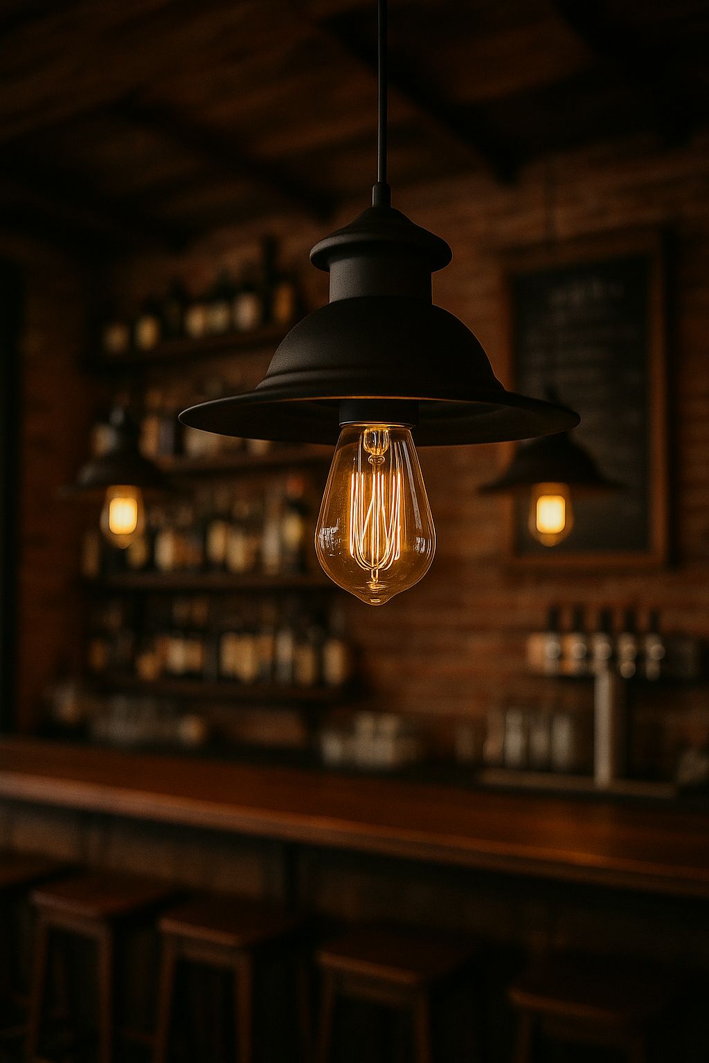 Es perfecta para usar sobre barras, mesas de comedor, cocinas, livings o espacios comerciales como cafés y restaurantes. Su luz cálida (compatible con lámparas LED Edison) genera ambientes íntimos y modernos.