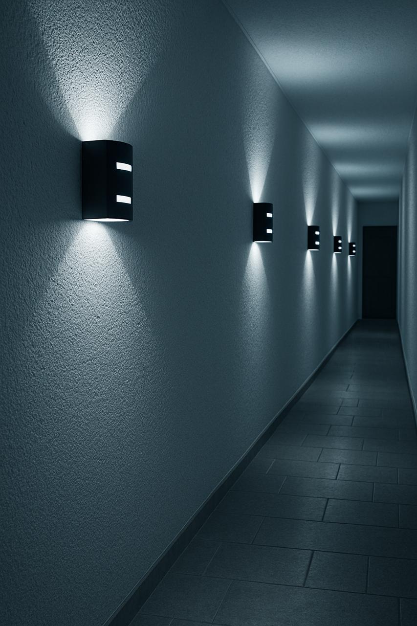 •Iluminación bidireccional (doppio): Proyección simétrica hacia arriba y hacia abajo, con haces de luz precisos que crean un efecto escultural sobre la pared.